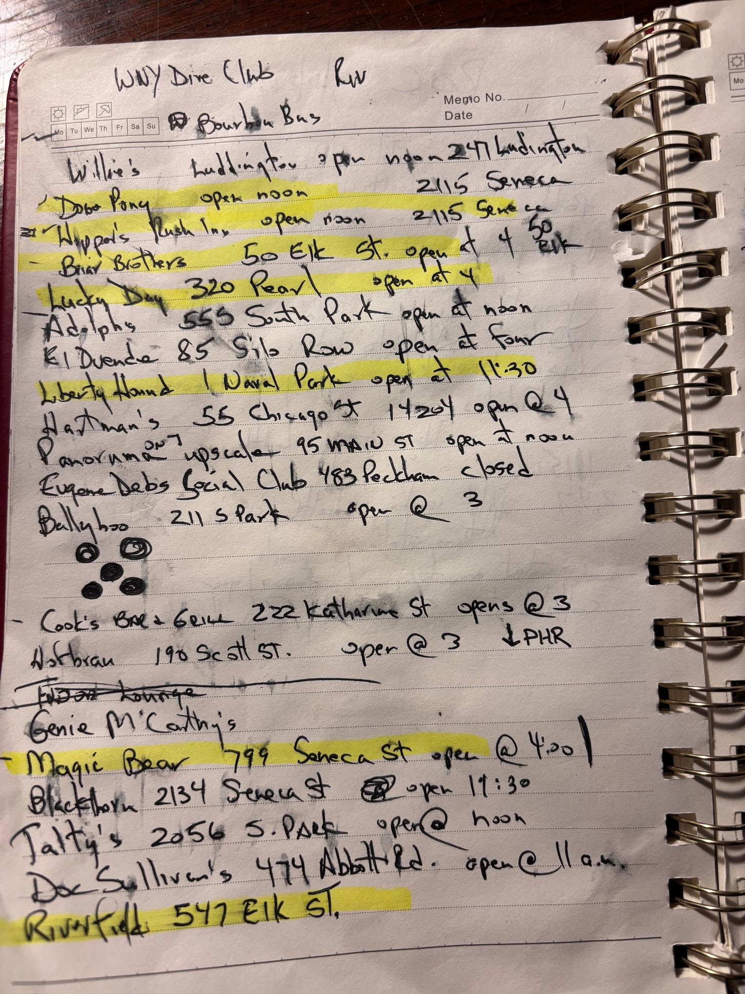 On February 18, eight of us—average age, 70.3 years—boarded a 12-seater Ford van—christened the Bourbon Bus Bars de Buffalo Tour—in the care of driver Dick Farwell—a AAA driving instructor, no less—bound for the big city. The City of Light, Buffalo. Once the eighth most populous in the country, now coming in much farther down the list, Buffalo is our “big city,” considering we are townies from third-ring suburb East Aurora, population around 13K. We don’t hold Buffalo’s decline against it; it’s just the right size, still big enough to qualify for a road trip to see what the rest of the world is up to and small enough to be welcoming. A city with a small town feel that, despite its travails, we call ours.