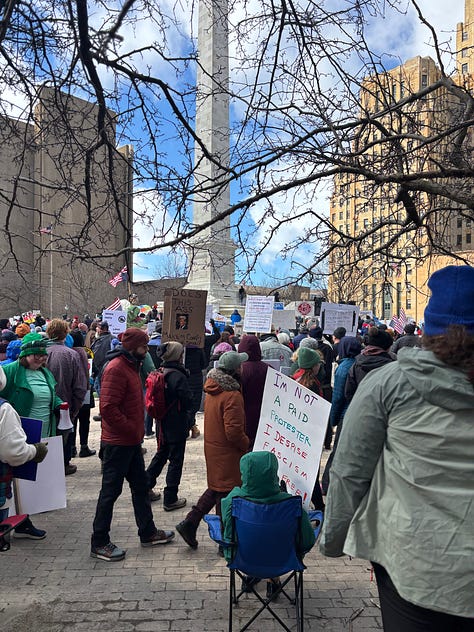 I never thought I'd become an activist in my seventies!! I've been to every march, along with my elder age family and friends. We make signs, bundle up or down and head into the city to say "NO" to this administration. We were encouraged to see some younger people at this march. The midterms are coming!! The messaging must be loud and clear! This will be a state by state referendum, not influenced by the electoral college nonsense. Please continue to spread the word! I grew up in West Seneca, a first ring suburb, but live in far away Colden now. I still love our shining city on the lake and all it has to offer for a short ride now and then.