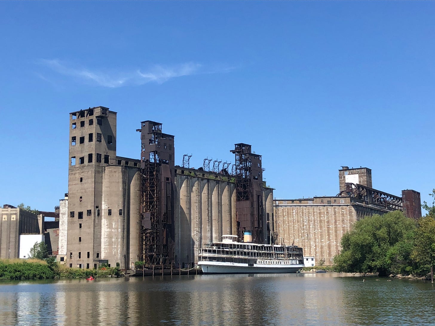 Then, well, opinions vary, but most will concede that the opening of the St. Lawrence Seaway and the building of the Interstate Highway System eliminated Buffalo as a critical piece of the national commerce puzzle. Steel and grain mills closed or relocated south and out of the country.